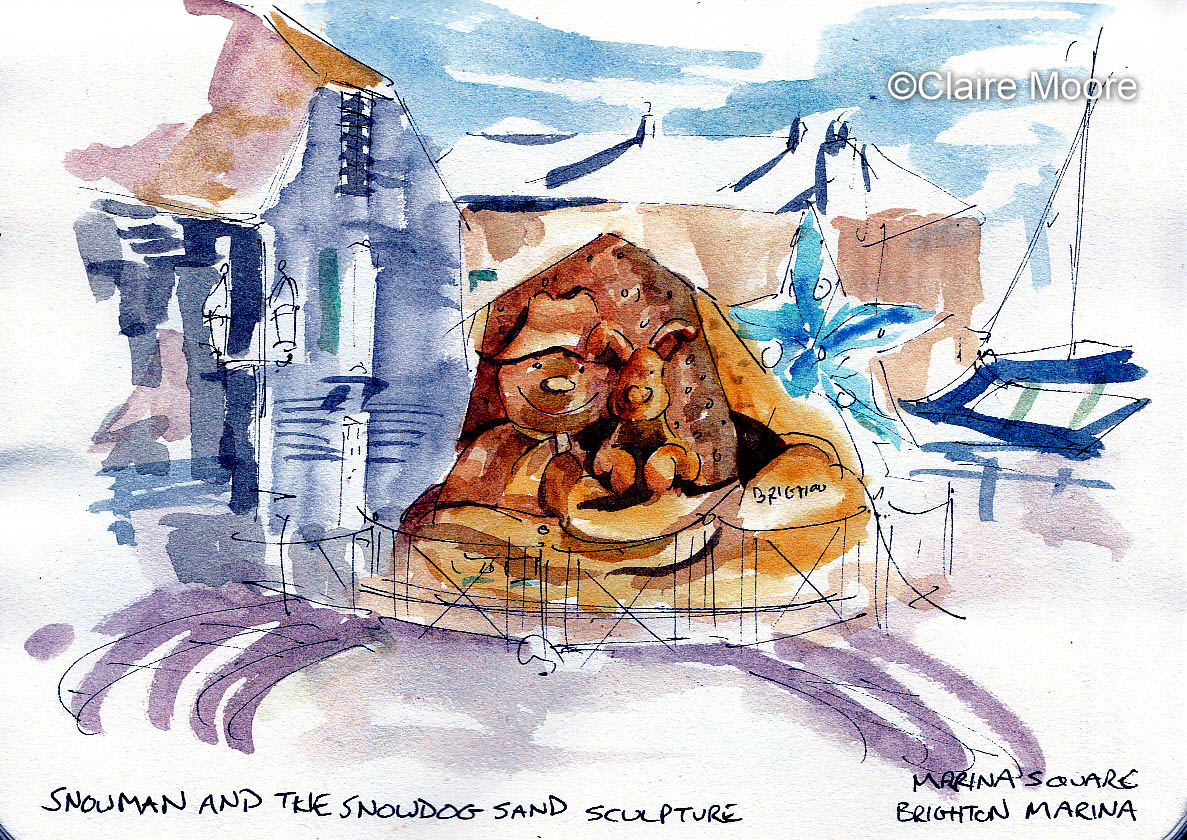 Snowman and the snowdog sand sculpture