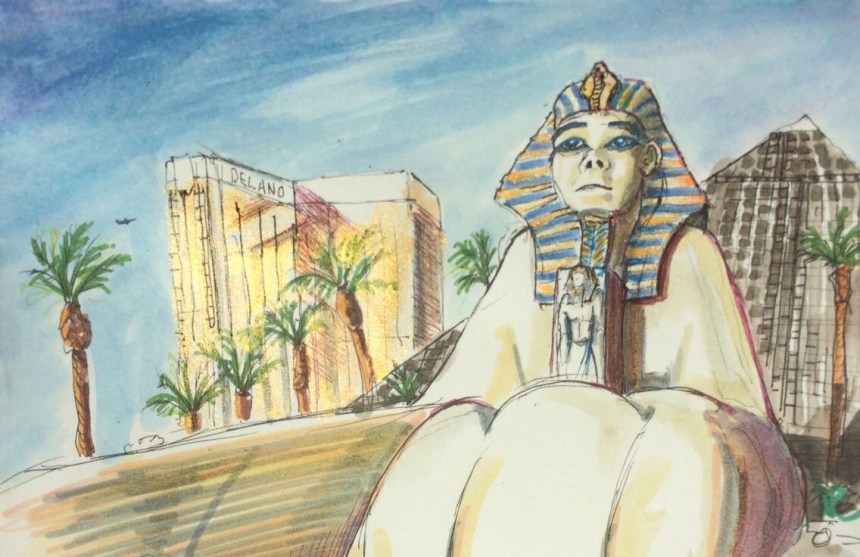 Inktober 2017: day twenty two By Claire Moore Just a short sketching opportunity this morning before I fly back to the UK.Excalibur from the Luxor pyramid A peaceful Sunday morning at the Luxor tram stop 36.095655 -115.175831 Share this: Click to share on X (Opens in new window) X Click to share on Facebook (Opens in new window) Facebook Like Loading... Related