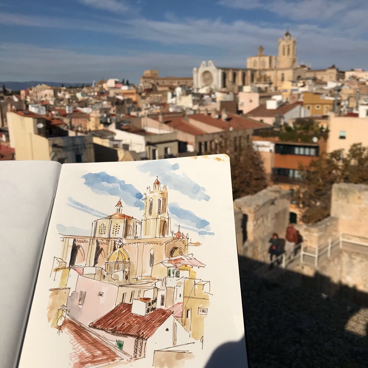 Stunning views and just time for a quick sketch of the cathedral before descending through the throngs of roman re-enactors!