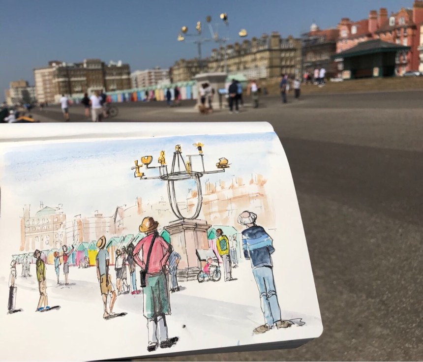 The newly unveiled Hove Plinth was getting lots of attention today. The first sculpture on display is Jonathan Wright’s mechanical model of the solar system, featuring the delights of Hove rather than boring old planets.