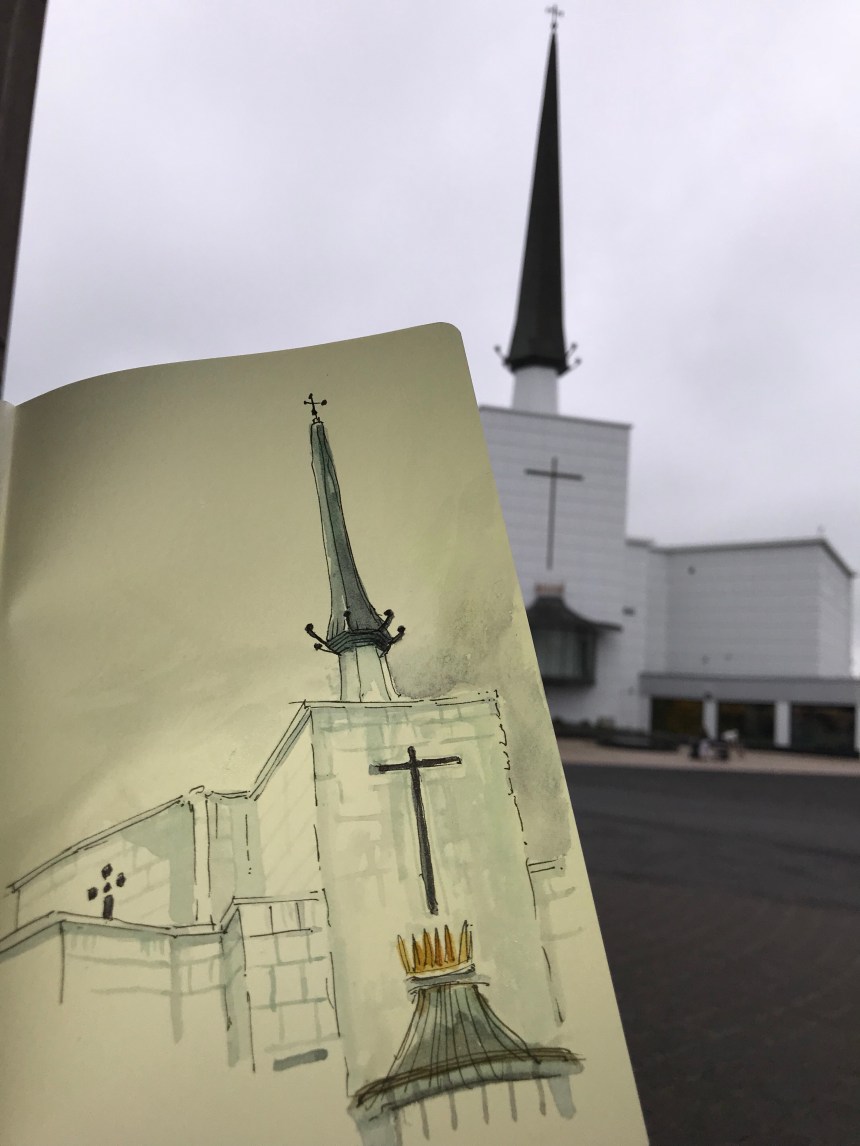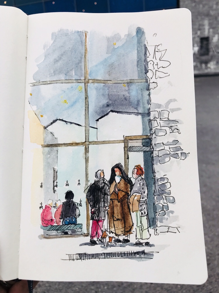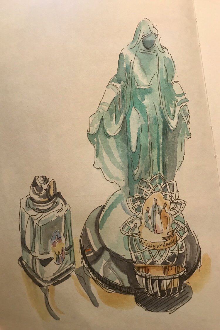 Sketching in holy water today in Knock Shrine as the rain pelted down for the start of the Bank Holiday.
