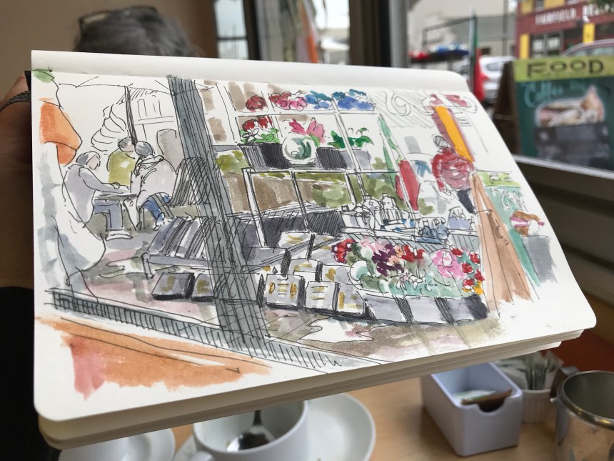 Dried off with soup and sandwiches and a quick sketch from a cafe.