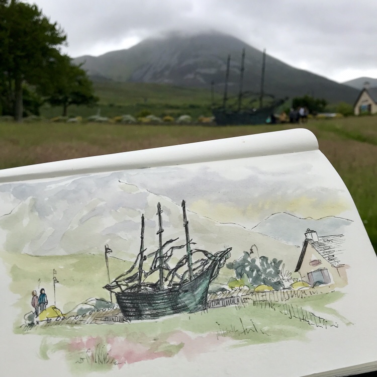I abandoned the disastrous sketch and opted to do the Murrisk loop. A lovely walk with plenty of sketching and no slippery scree.