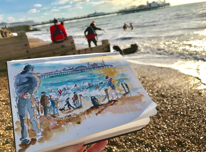 Scream! Scream! No, that’s not the sound of children opening their presents. It’s the shrieks of the brave swimmers of Brighton and Hove taking their annual dip in The Channel on Christmas Morning! Happy Christmas!!