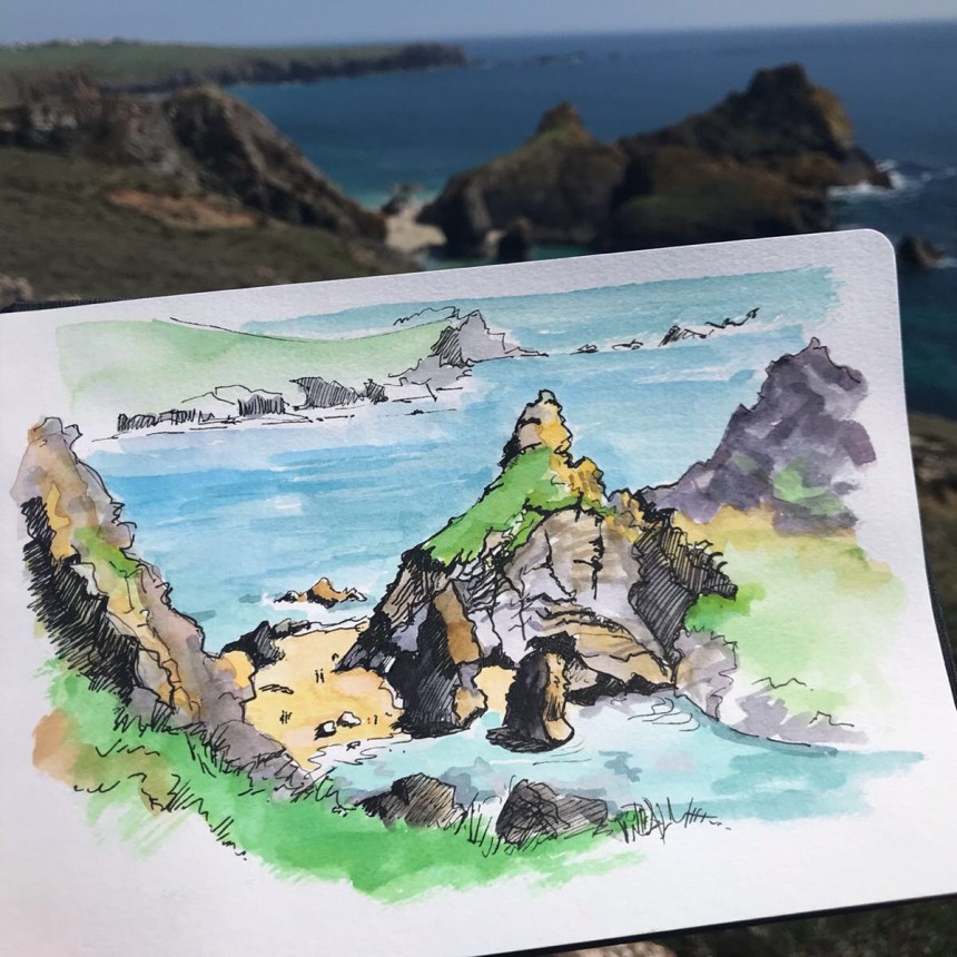 Eat a pasty bigger than your head, then walk the Lizard Peninsula. Freehand sketching optional.