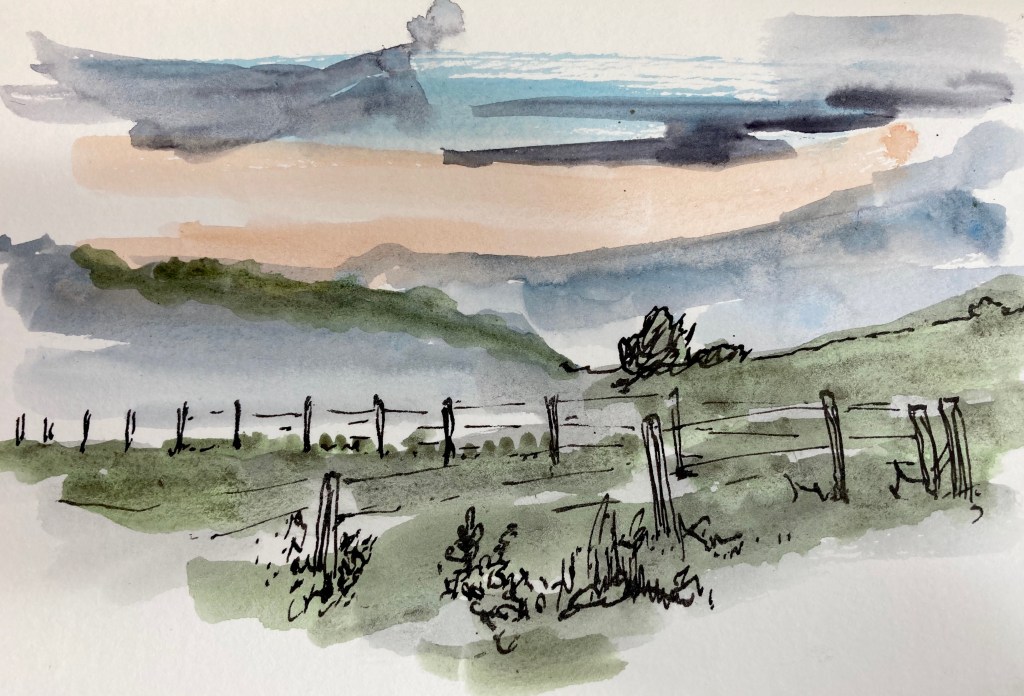 The advantage of keeping a consistent palette for years, is that you can remember where the colours are in the dark! Indigo, neutral tint, Payne’s grey, ultramarine, that weird Schmincke cerulean blue from Frankfurt etc. etc. etc.