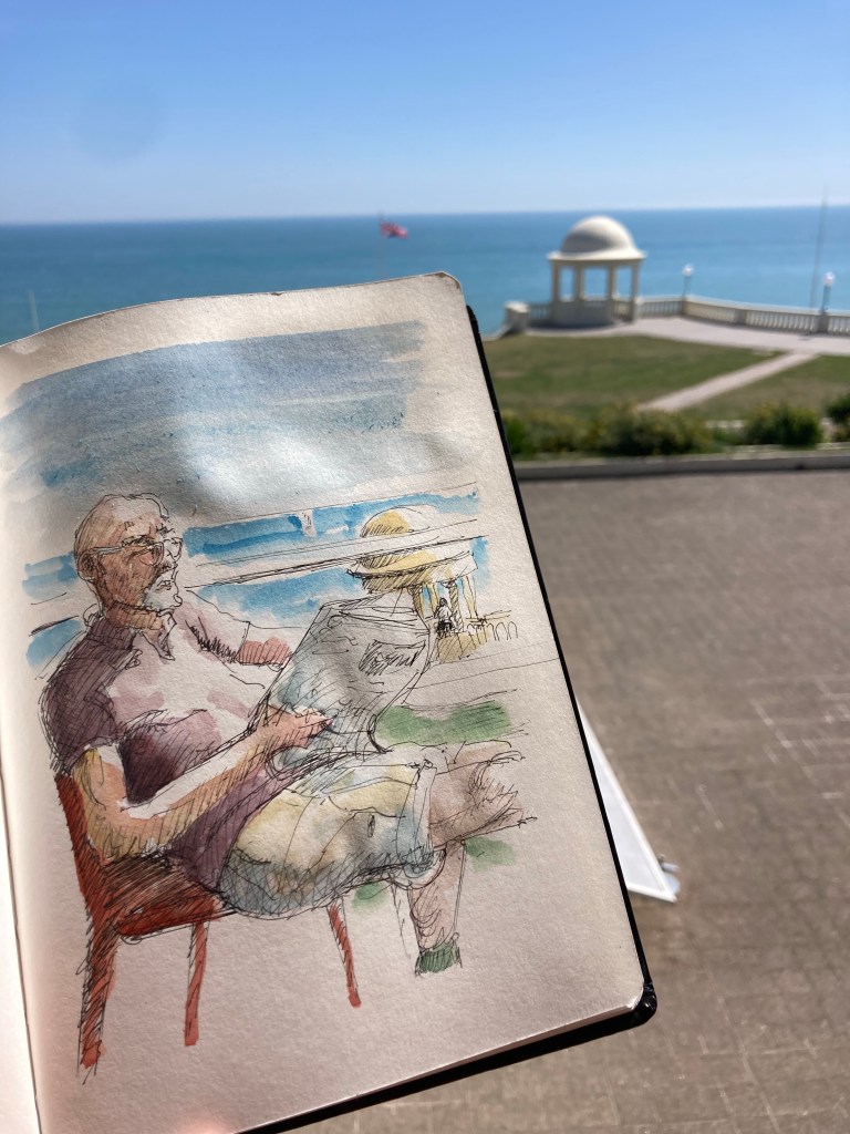 The paper By Claire Moore Hanging around at the De La Ware Pavilion. Surreptitious sketch of man reading paper Share this: Click to share on X (Opens in new window) X Click to share on Facebook (Opens in new window) Facebook Like Loading... Related