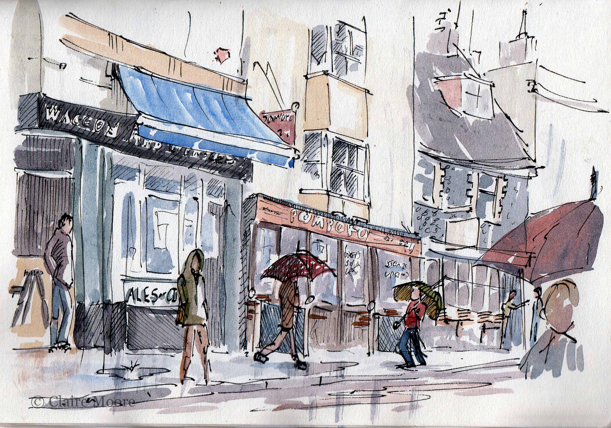 After parking up at the NCP, Roy heads to Pelham Square on Trafalgar Street, where he bumps into Terry Biglow, the dodgy ‘under-belly-world-criminal’. When I painted this, there was just a lady quietly eating a smoked salmon sandwich, so capturing the sinister undertones was tricky.