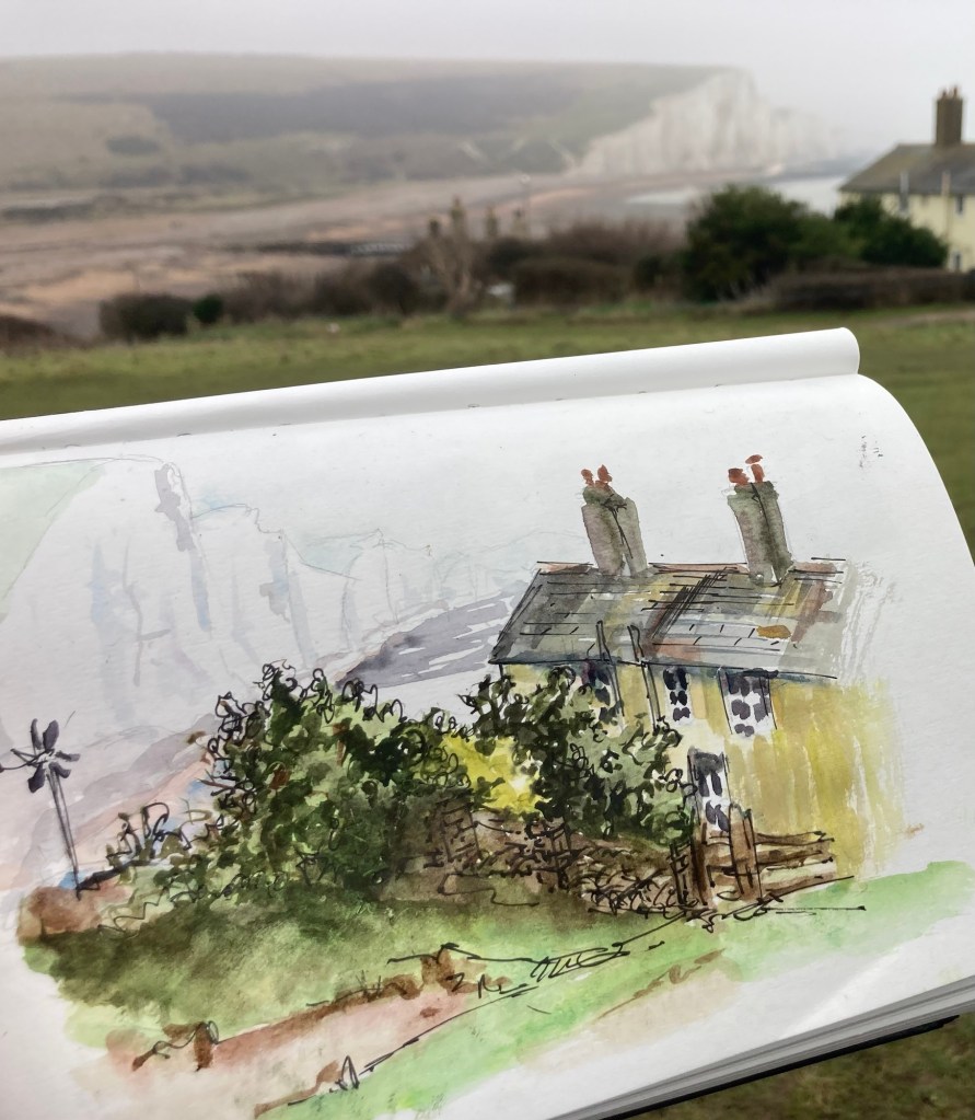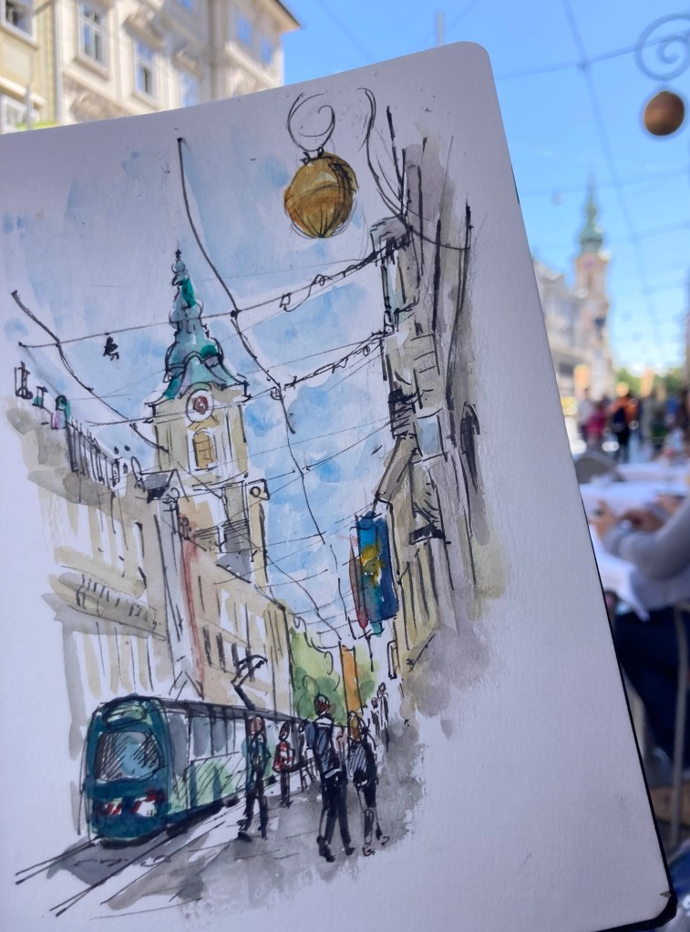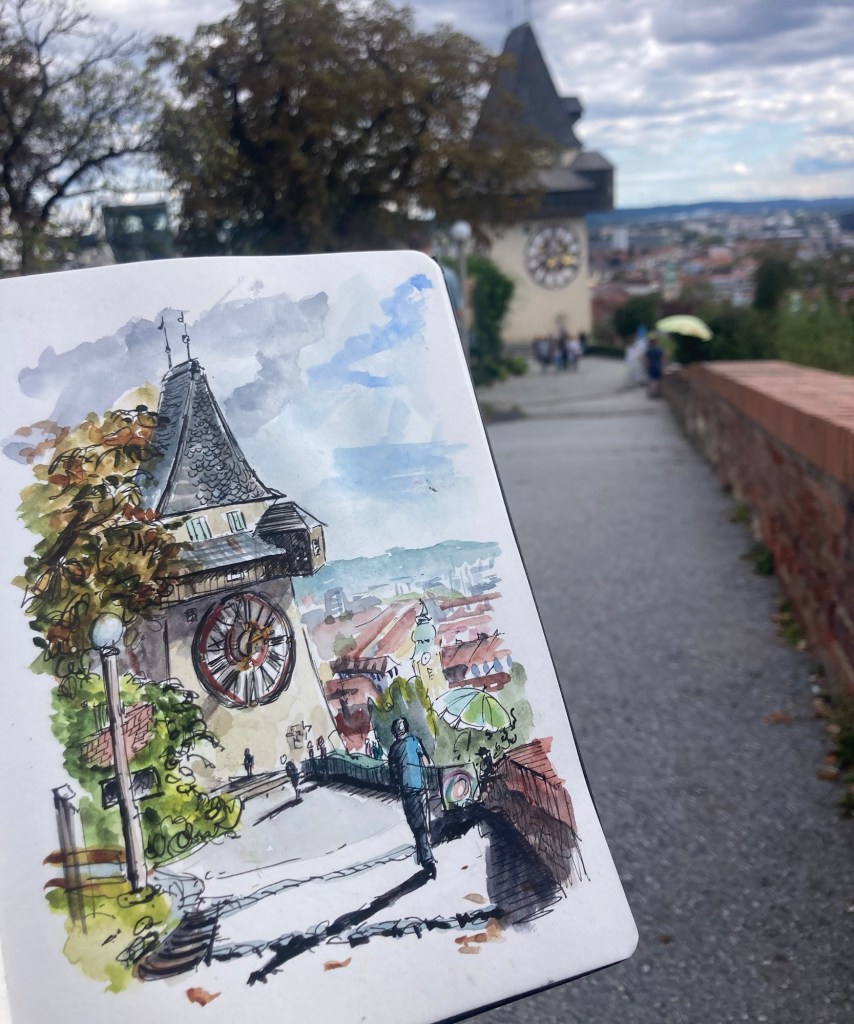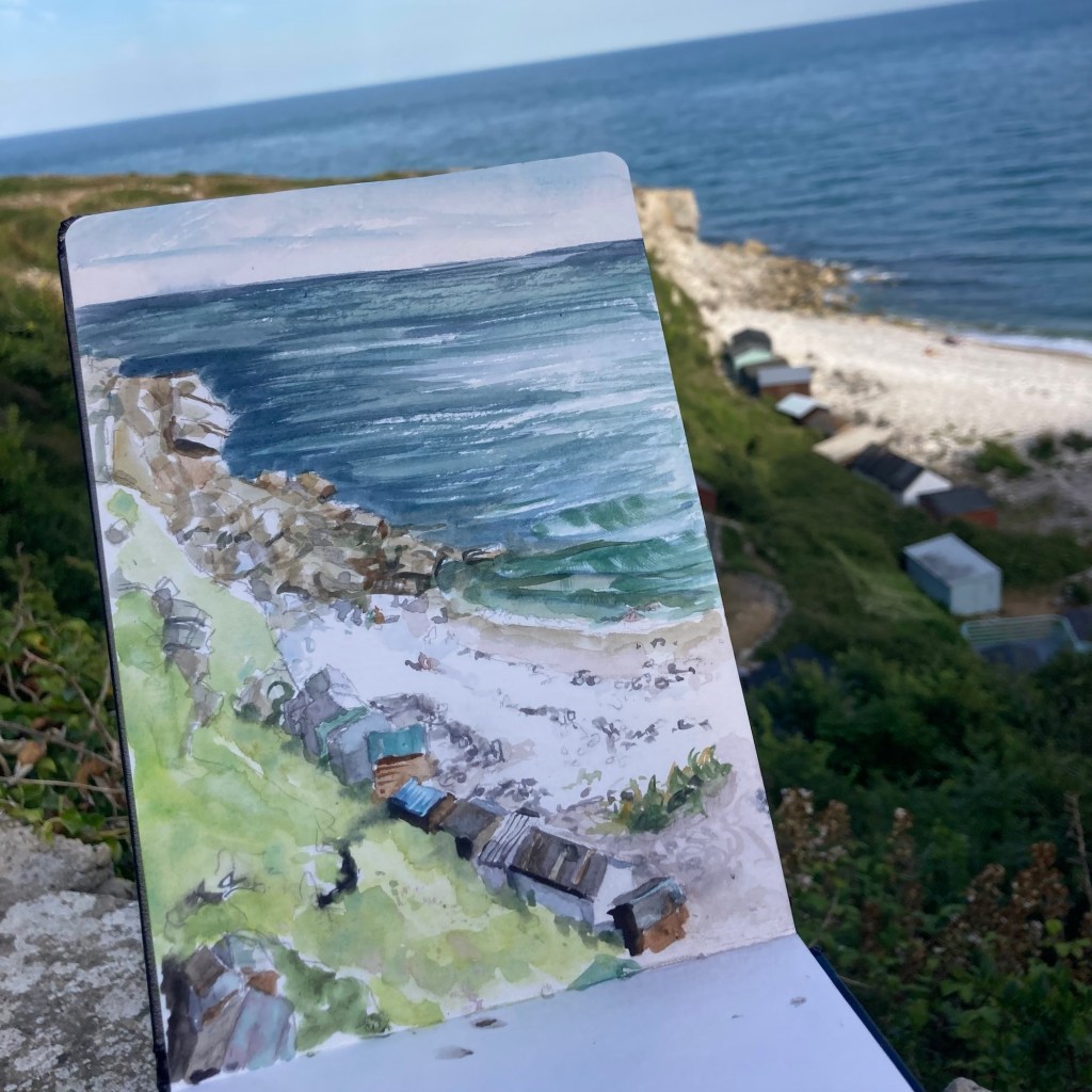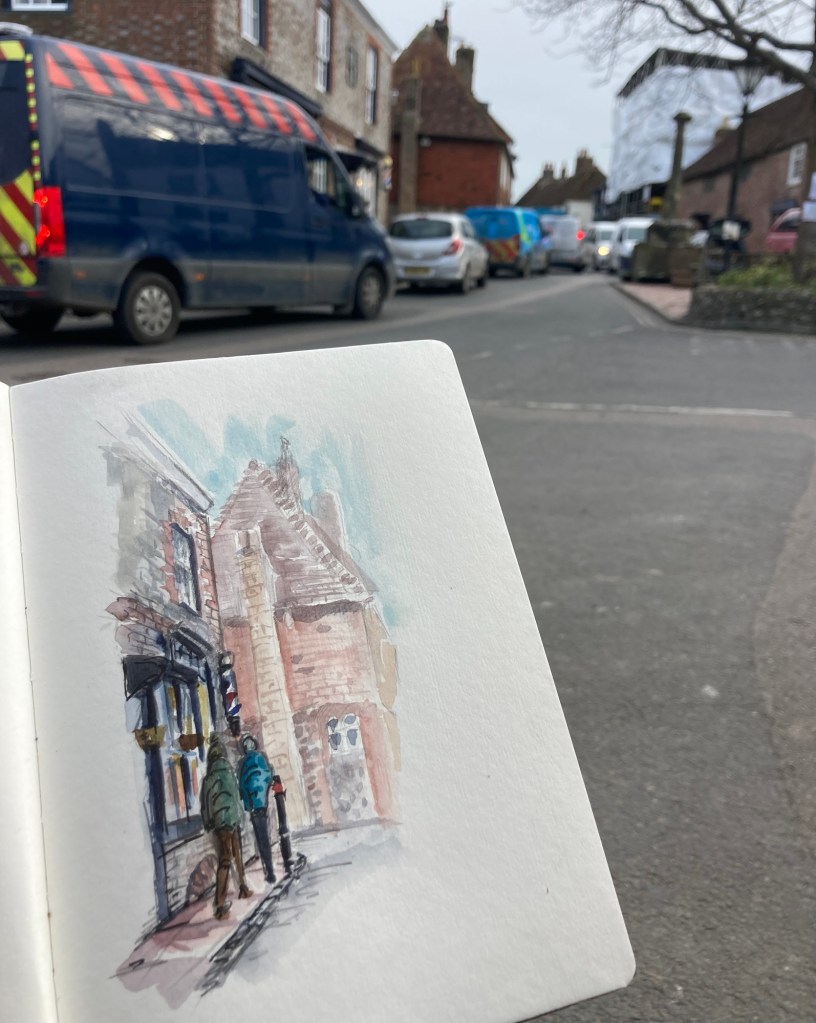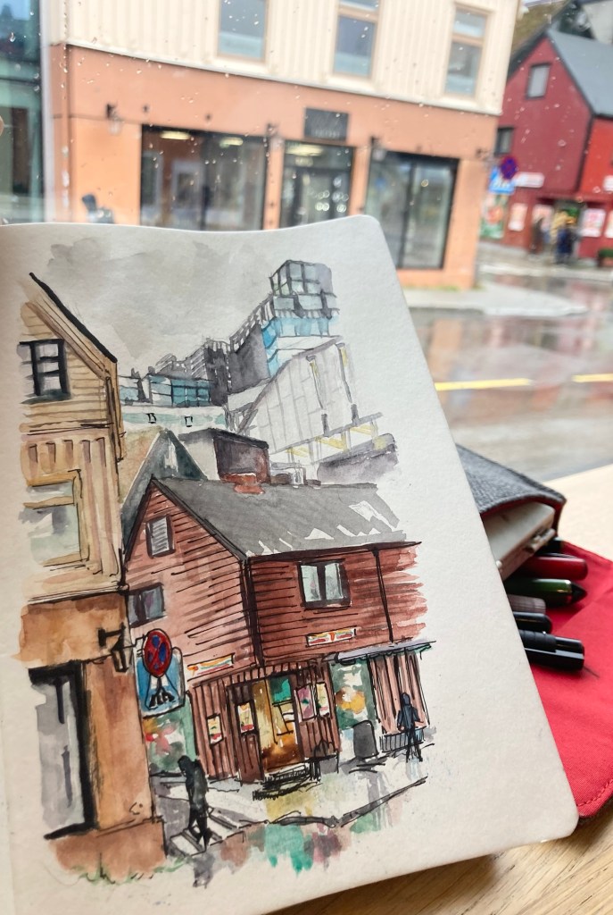 * Feeling paint seep through my coat as I pin the palette down with my elbow