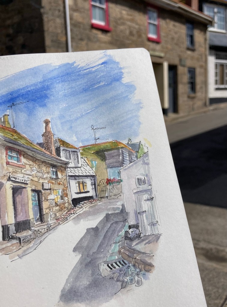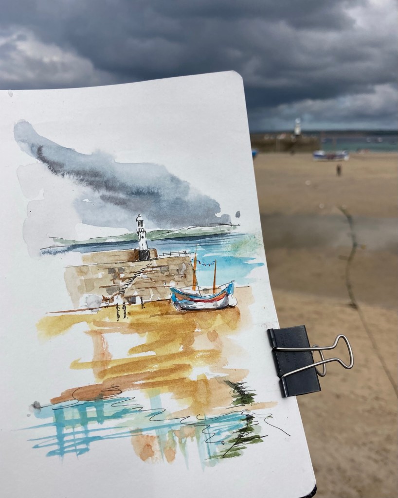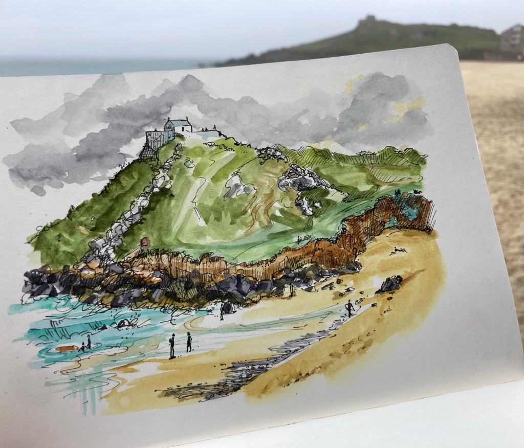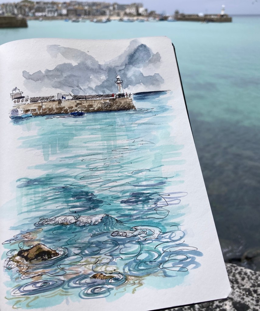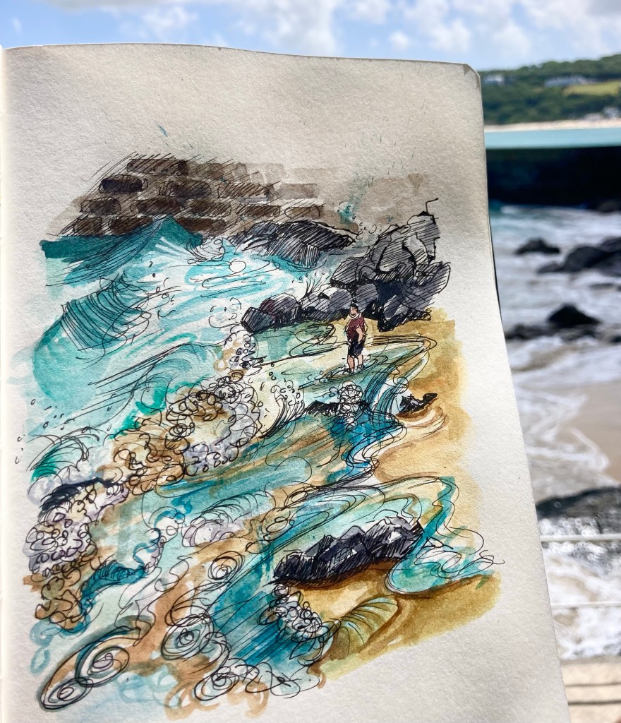 My sketchbook is soggier than a wet sock and this dog is the only one having fun.