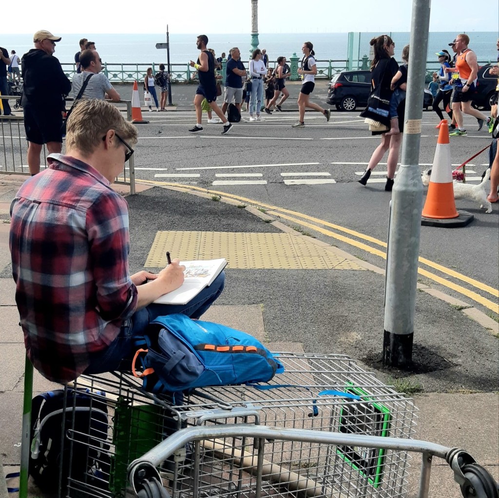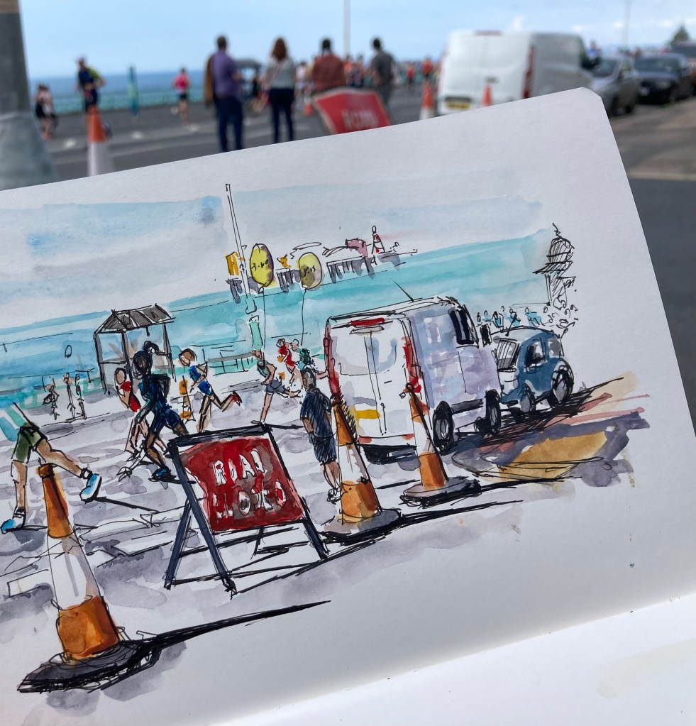Quick sketch of the Brighton marathon today. My people are a bit wonky… they run surprisingly fast… its almost like they’ve trained for it.