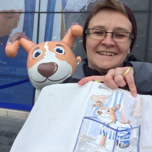 12:50pm Very excited to meet Judith Berrill, creator of the fabulous ‘Horatio’ and ‘Patch’, whilst sketching Southdowns dog!