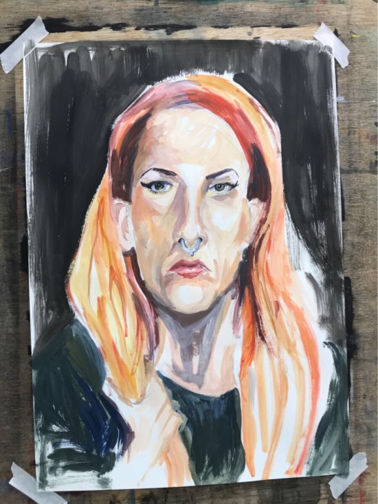 On week three of my portraiture course I chose the challenging ‘head on’ view. Which is my excuse for why our cheery model looks so very miserable.