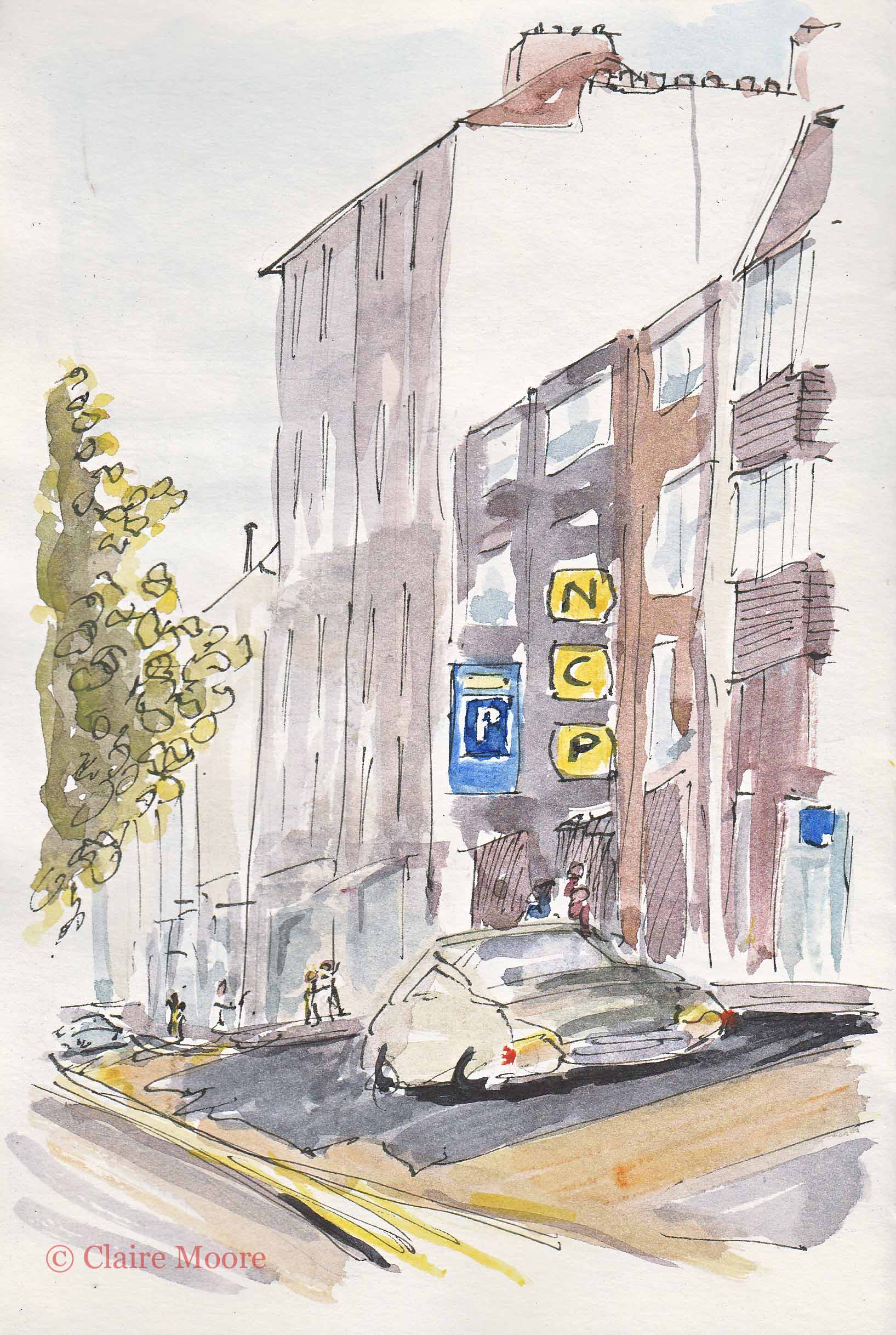 In “Deadman’s footsteps” Roy parks his Alfa Romeo in the Church street NCP pictured here. I managed to spill paint all over this when someone asked me for directions; I realised later that I’d accidentally sent him the wrong way, Karma.