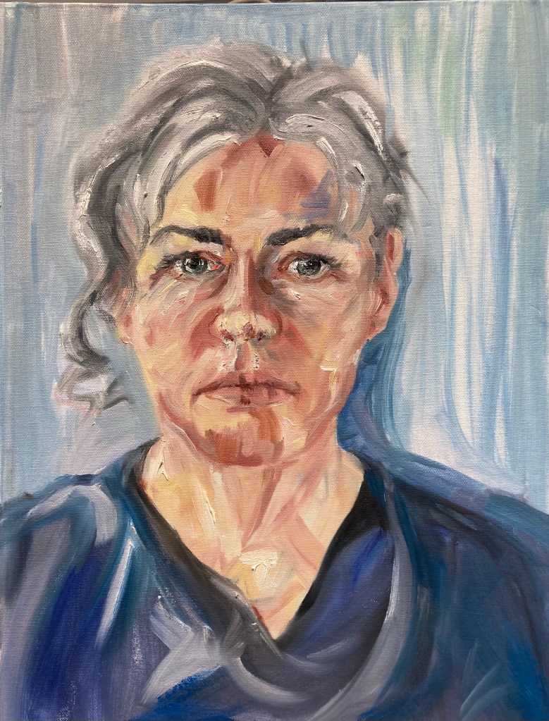 Blue Wednesday By Claire Moore A portrait in oils We’ll smile if we want to on International Women’s day. Leave a comment