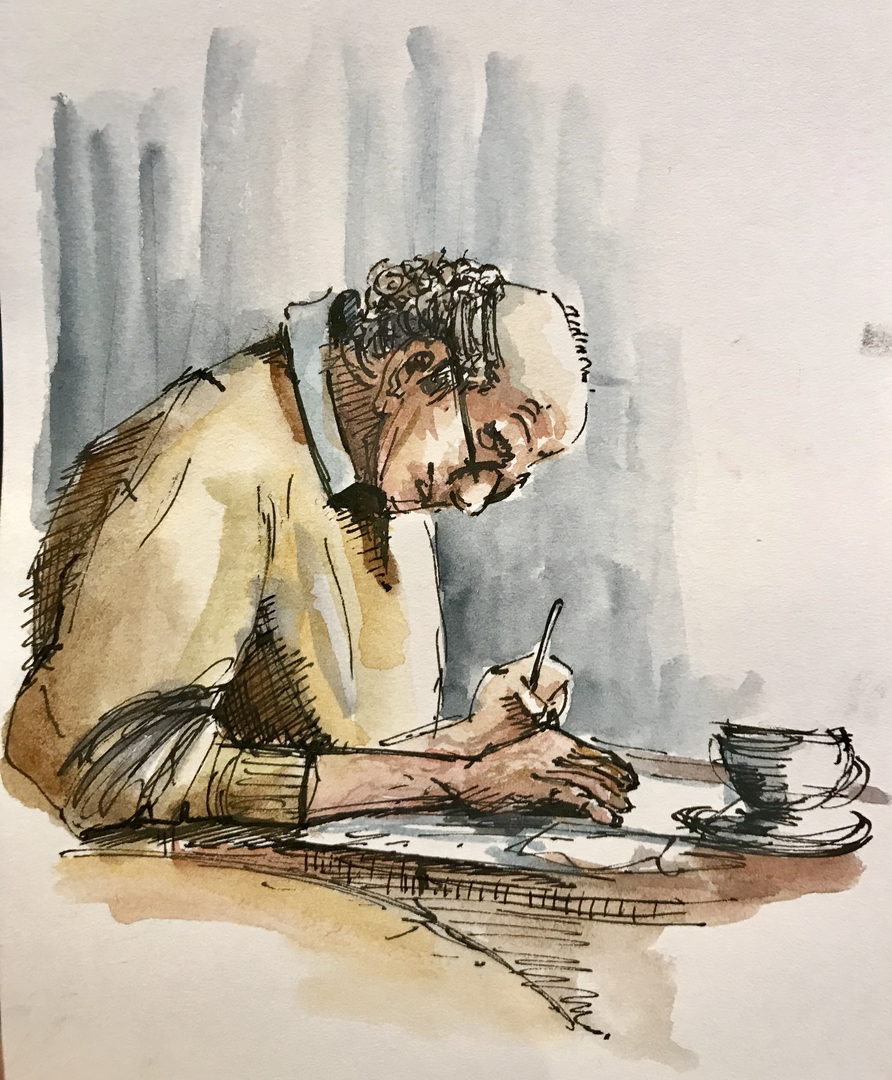 A bit of Portraiture practice today, straight down in pen and wash.