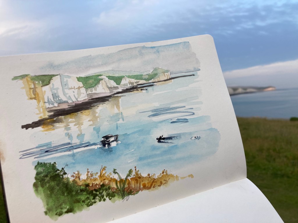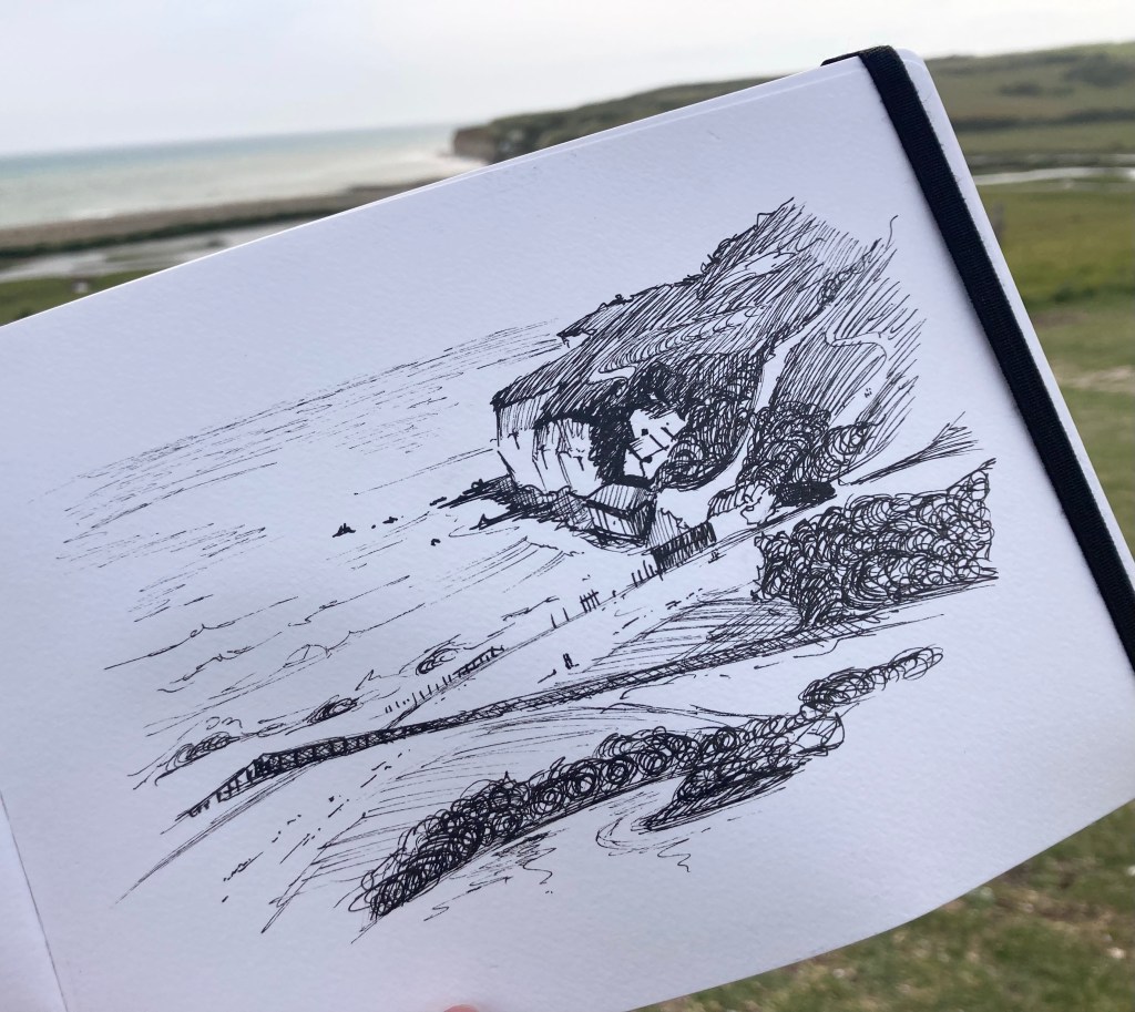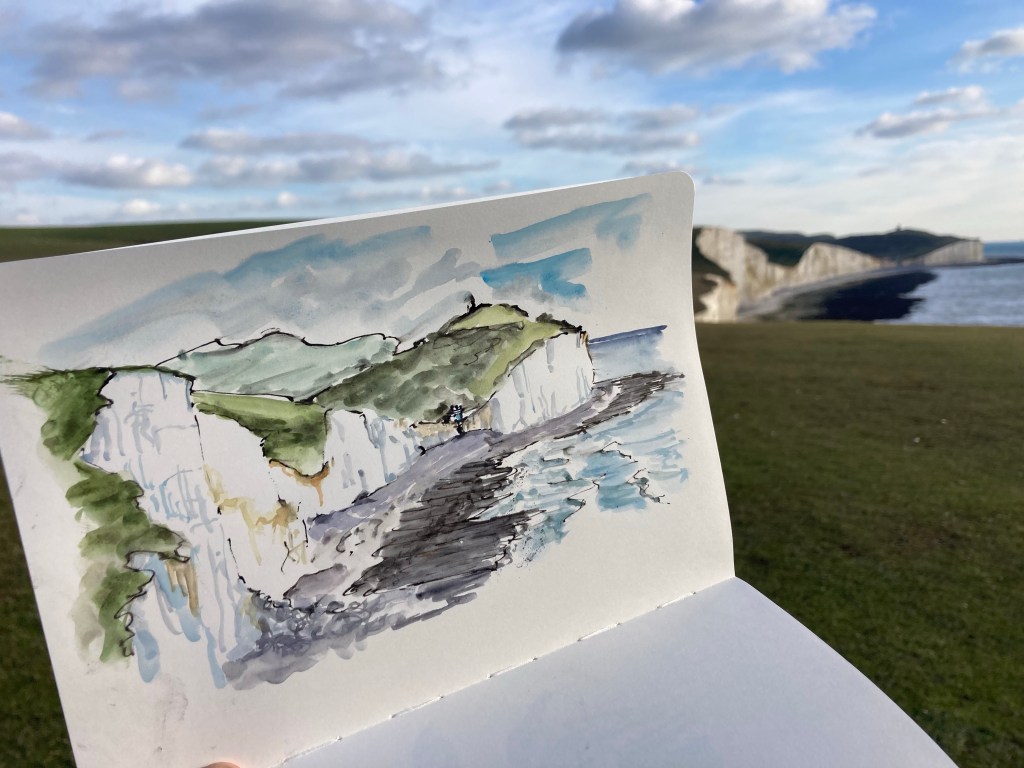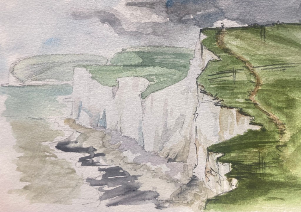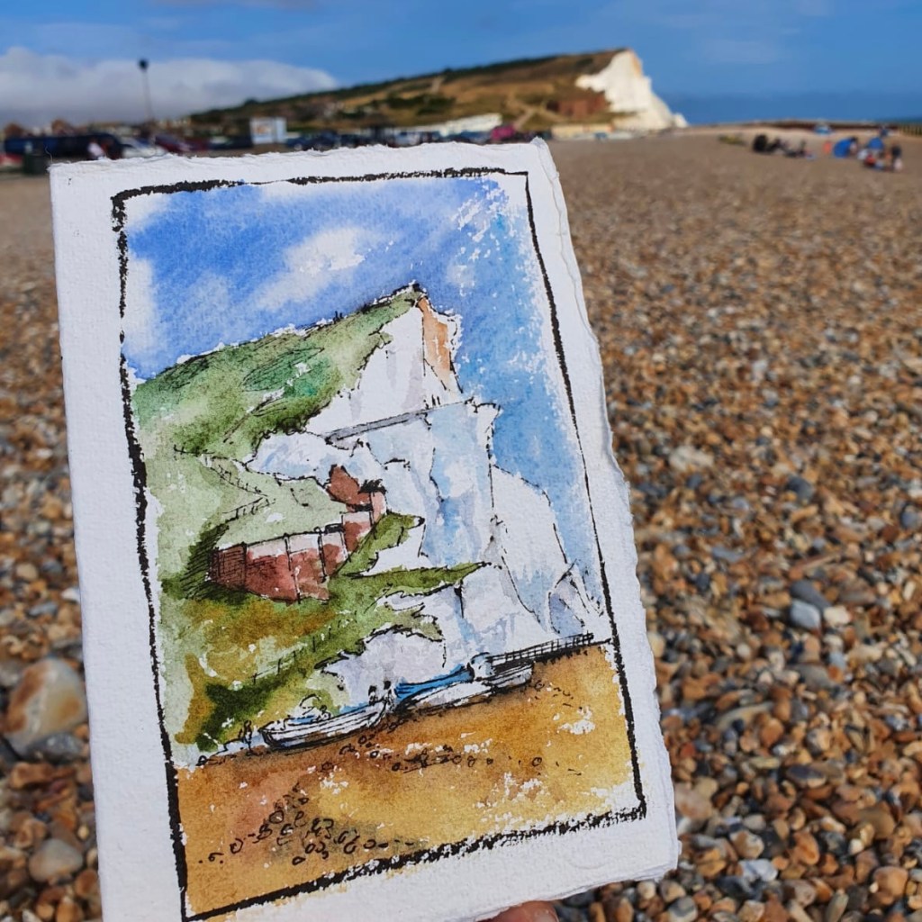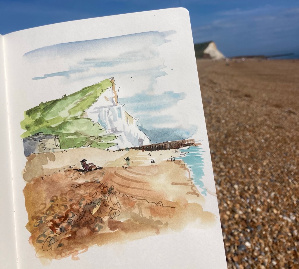 Eastbourne to Cuckmere By Claire Moore dog walks man calm and sunny me and palette almost blown away wind weary after endless sisterscolour is abandoned Leave a comment