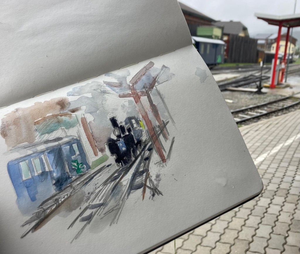 Murtalbahn montage By Claire Moore steaming start in graphite a bit of colour…and she’s off! and a fast finish before I get left behind! and some swift ones on the move Leave a comment