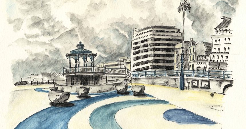 Snowdogs by the sea urban sketchathon.