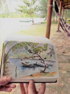 The island is connected to Phu Quoc by the wobbly ‘monkey bridge’, just visible in the far right of the sketch.
