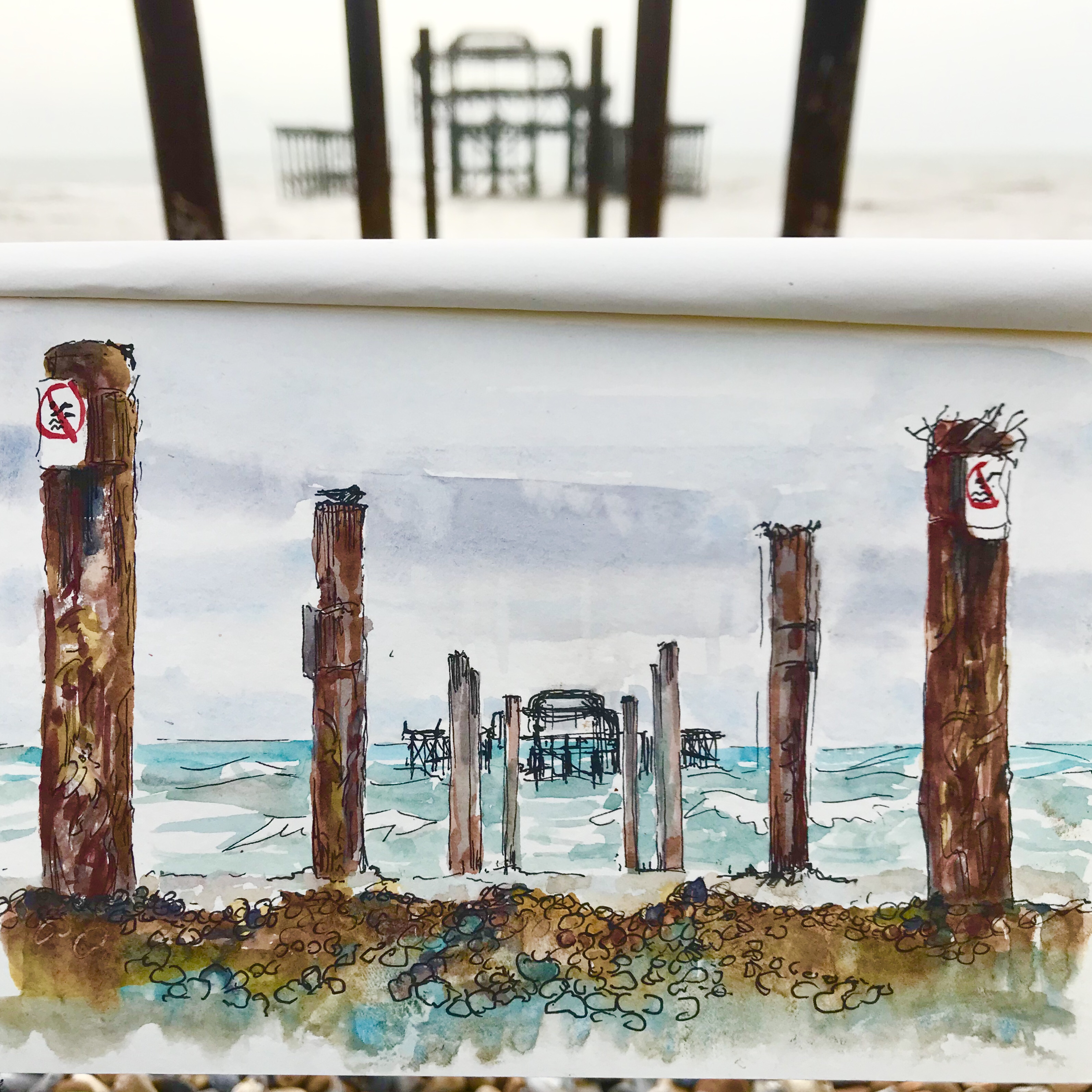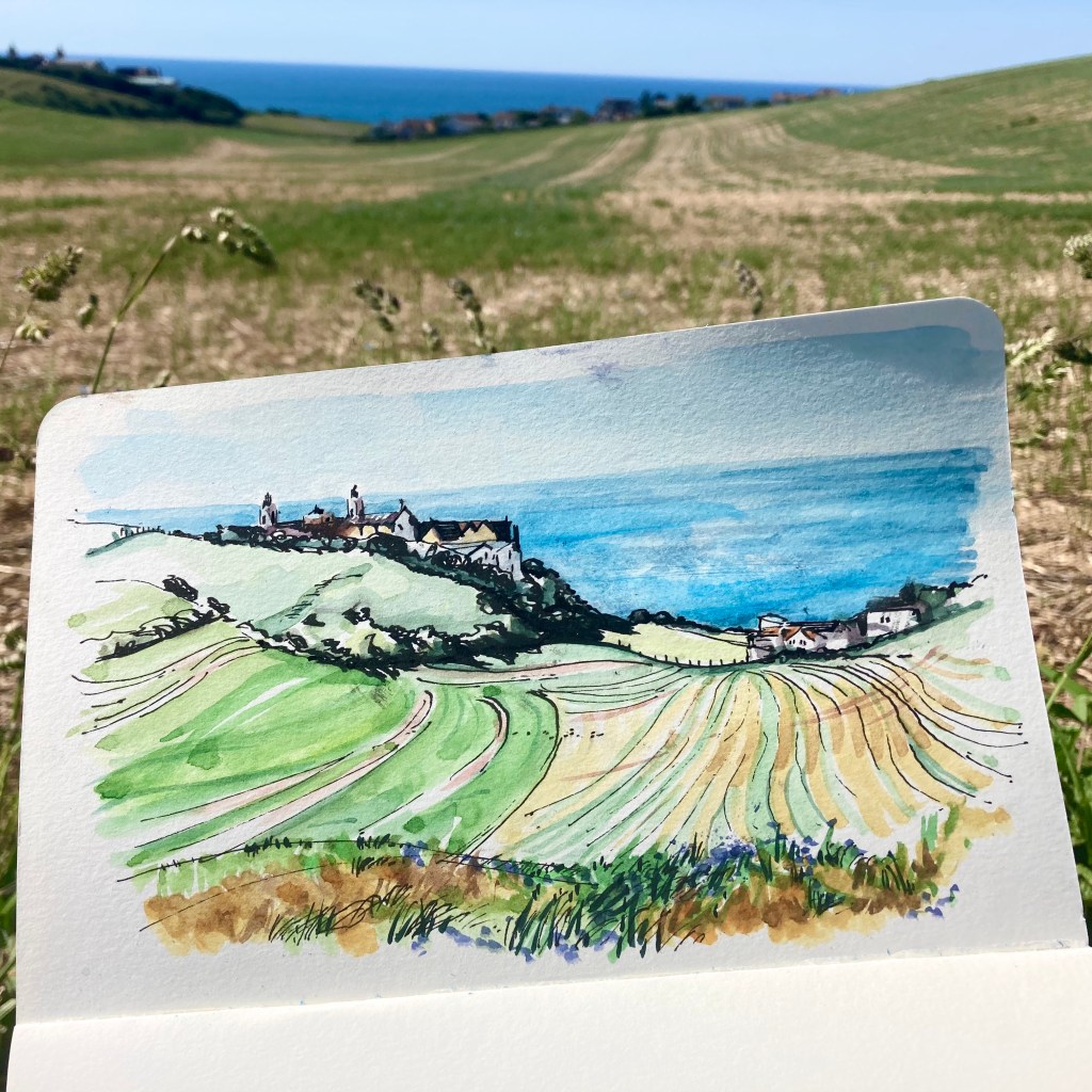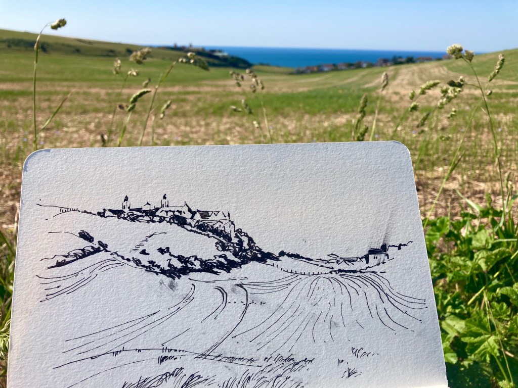 When a man you’ve never met before, circles round and round you, collecting golf balls… you know you are extreme sketching. Roedean ‘gals’ school from ‘outside’ East Brighton golf course.
