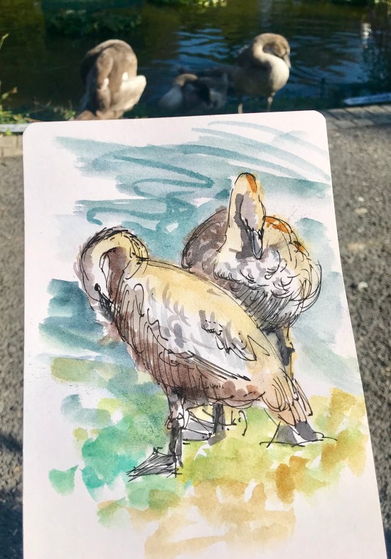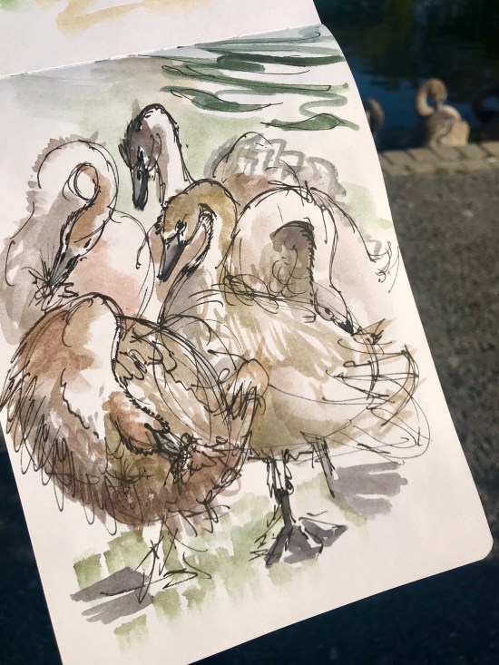 Three weeks older, white tipped wings stronger every day, the Queens Park cygnets may soon be on their way.