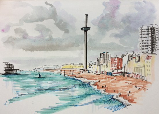 I’m really looking forward to ditching the 3.5kg’s of ink bottles, pens and various sketchbooks I’ve carried everywhere this month. I’m going to be floating on air, with just one sketchbook, my tiny paint palette and a couple of pens!