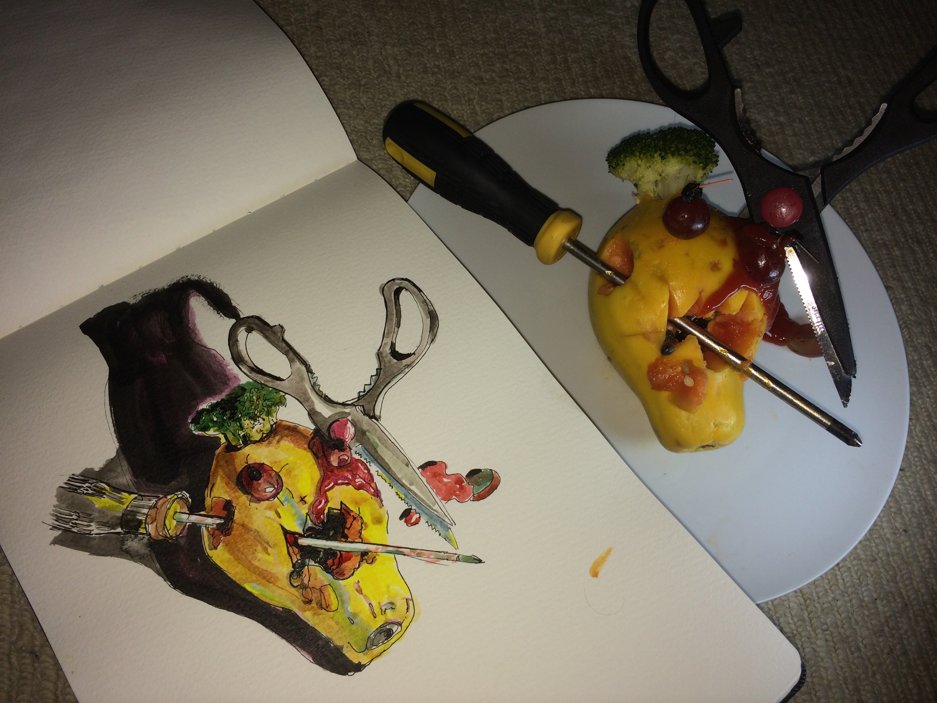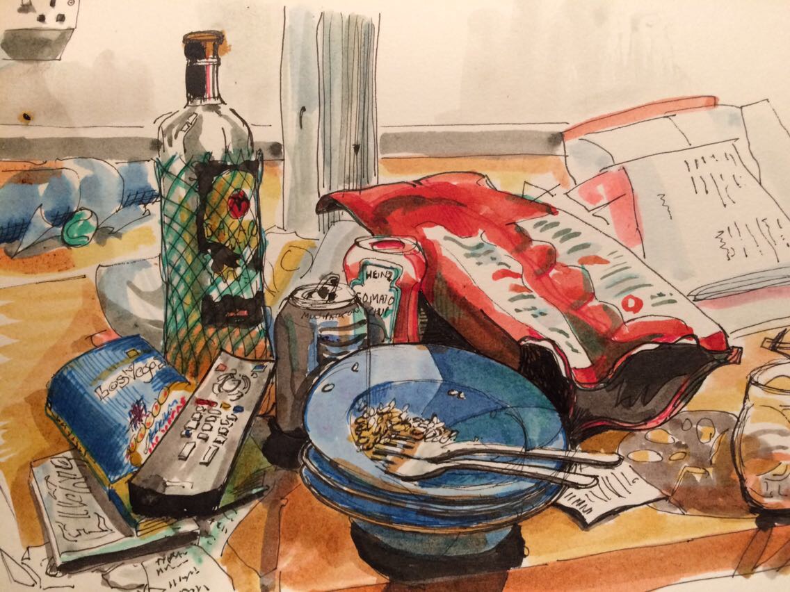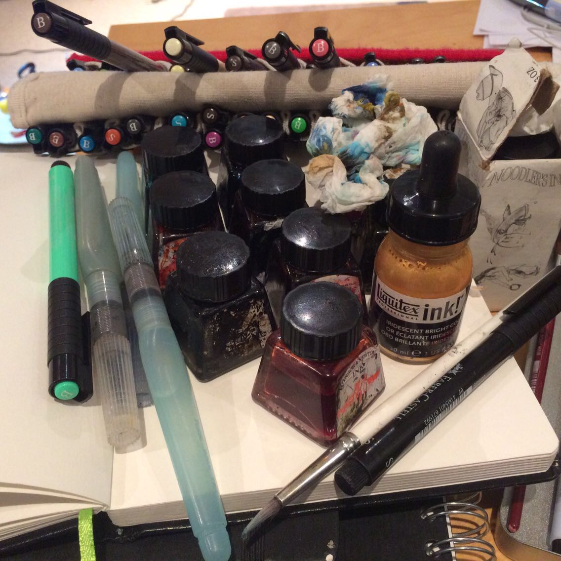I’m really looking forward to ditching the 3.5kg’s of ink bottles, pens and various sketchbooks I’ve carried everywhere this month. I’m going to be floating on air, with just one sketchbook, my tiny paint palette and a couple of pens!