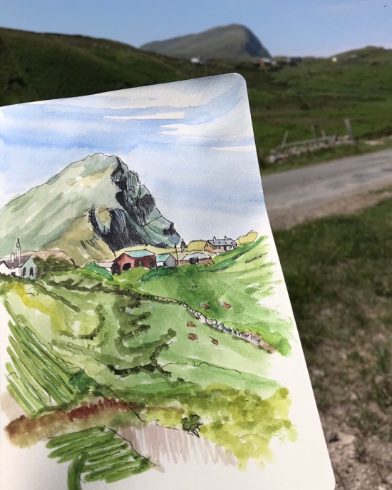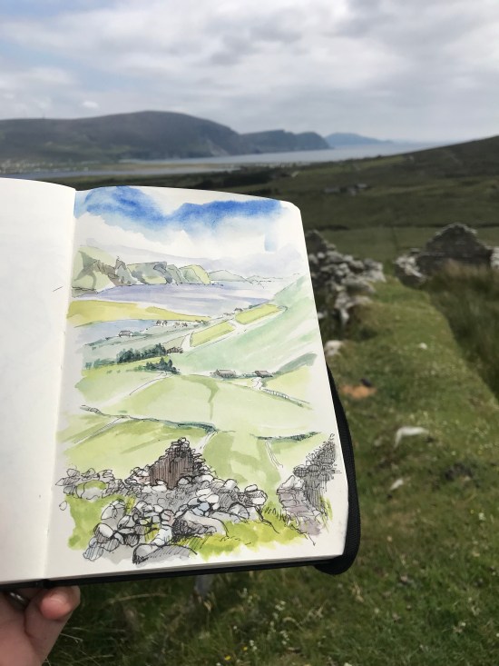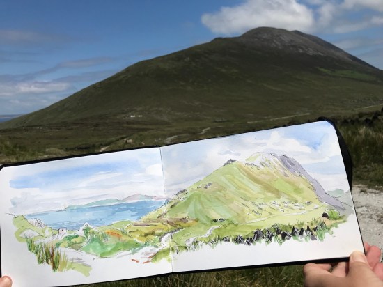 I abandoned the disastrous sketch and opted to do the Murrisk loop. A lovely walk with plenty of sketching and no slippery scree.