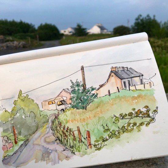 Traditional watercolour landscapes are not my forte, but this stunning spot in the graveyard above Killary Harbour fjord gave me itchy aqua brushes. Sometimes you just have to try!