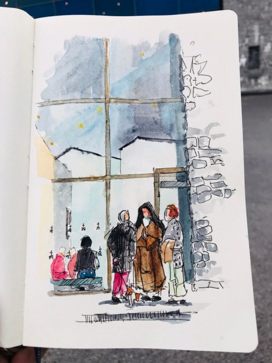 Dried off with soup and sandwiches and a quick sketch from a cafe.