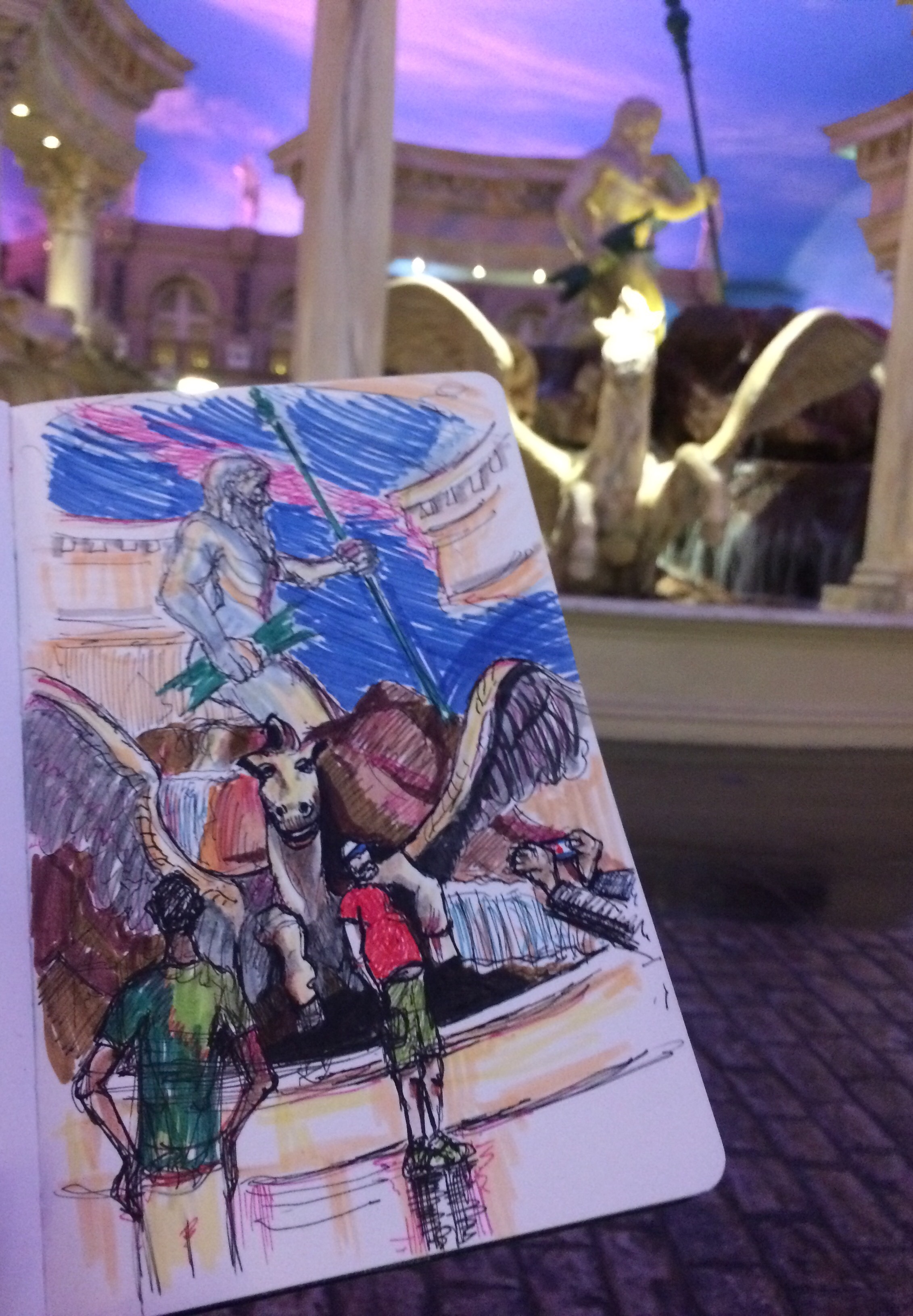 Endlessly circling to find a way out of Caesar’s Palace, I eventually gave up and sketched this man having a meltdown