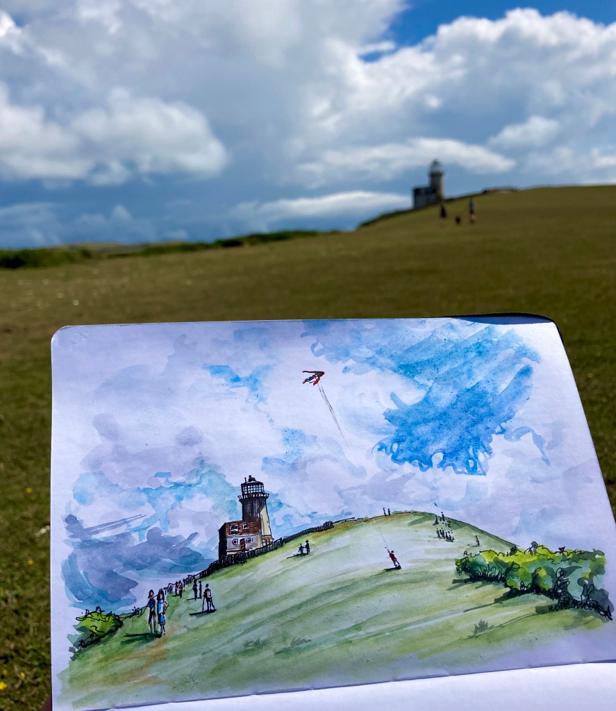 Belle Tout lighthouse, surfs the rolling cliff.
