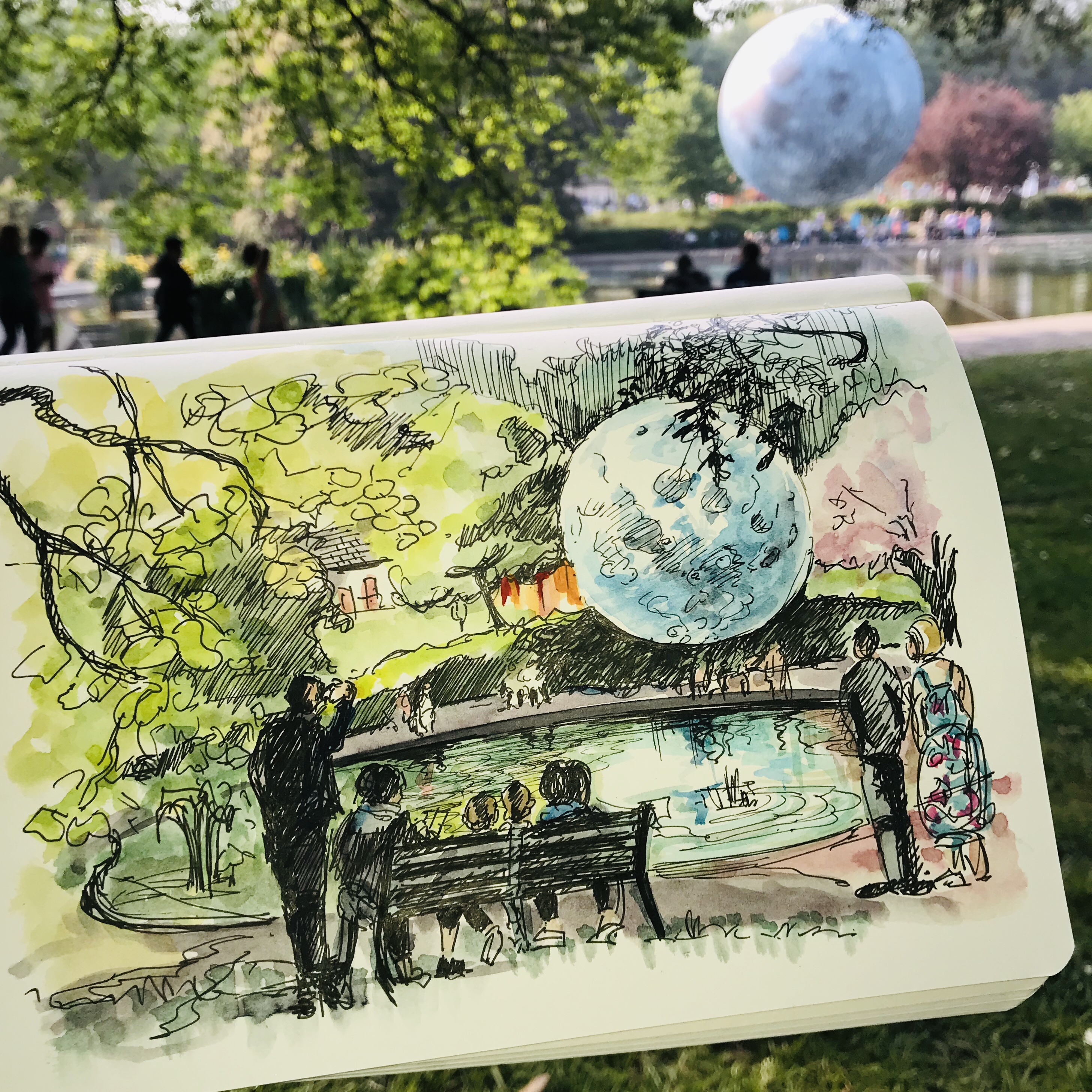 A busy afternoon in Queens Park, Brighton as Luke Jerram’s Museum of the moon lands on the pond. Sooo cool!