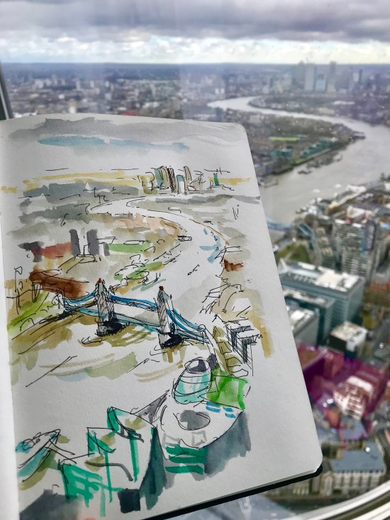 Did you know that 30mph winds whipping your ankles on the open air viewing deck of London’s Shard, can induce spontaneous anxiety-fueled sketching…