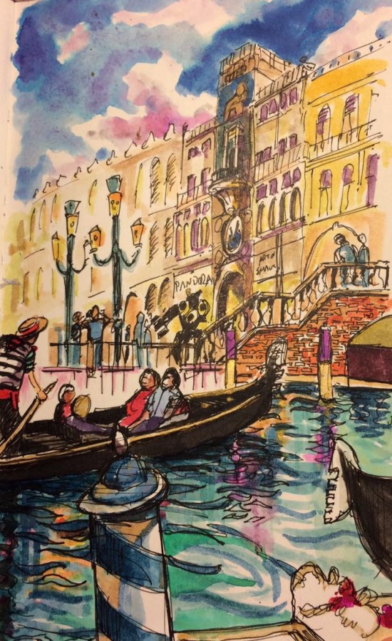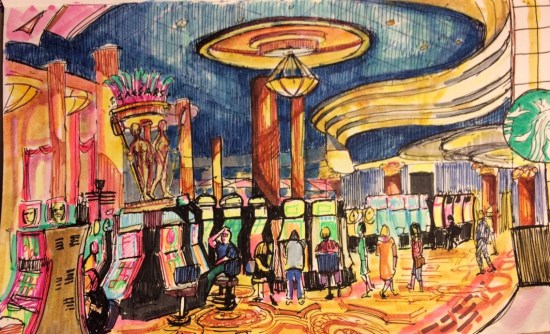 Endlessly circling to find a way out of Caesar’s Palace, I eventually gave up and sketched this man having a meltdown