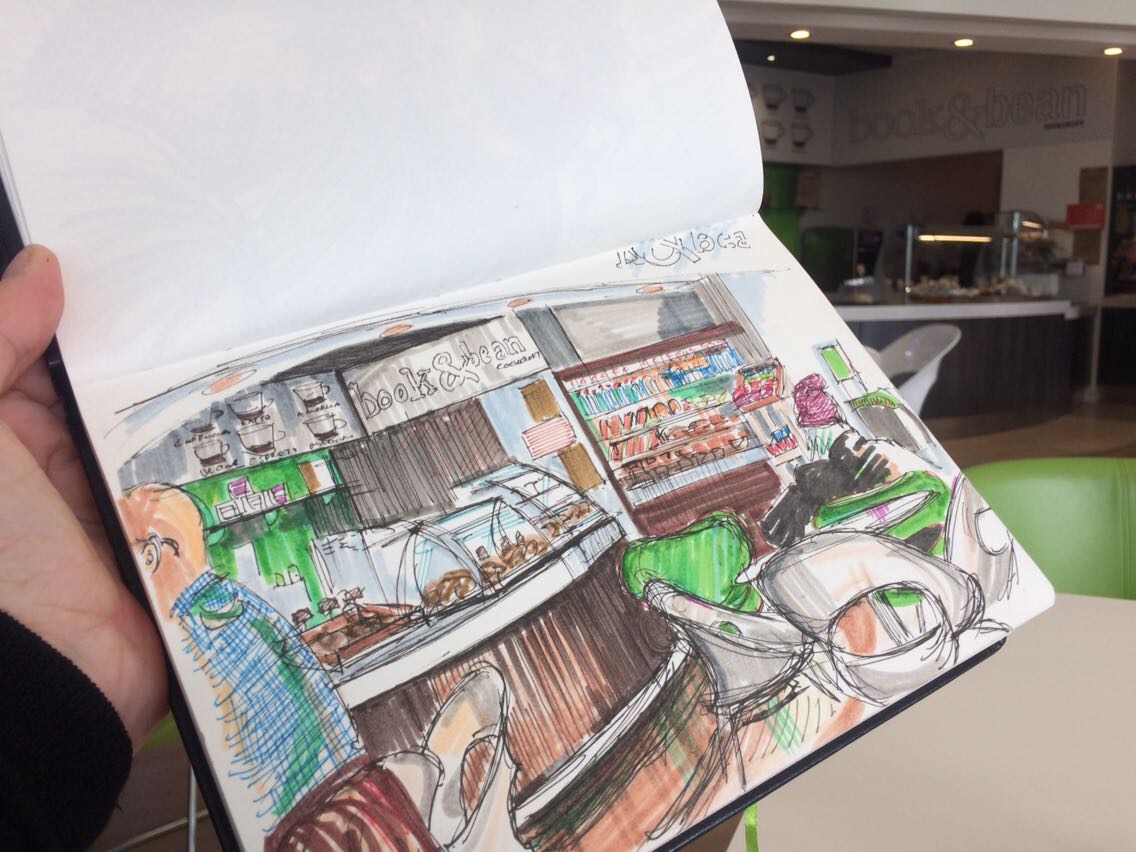 Here is a rare quiet lunchtime moment in the popular Book & bean cafe at the University of Brighton.