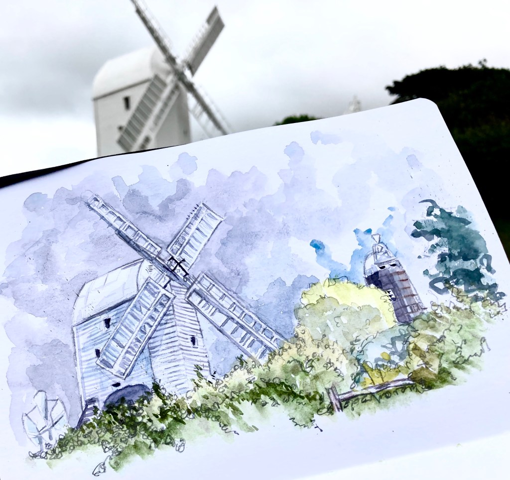 Surrounded by moody weather: Jill the post mill (left) and Jack the tower mill, Clayton, Sussex.