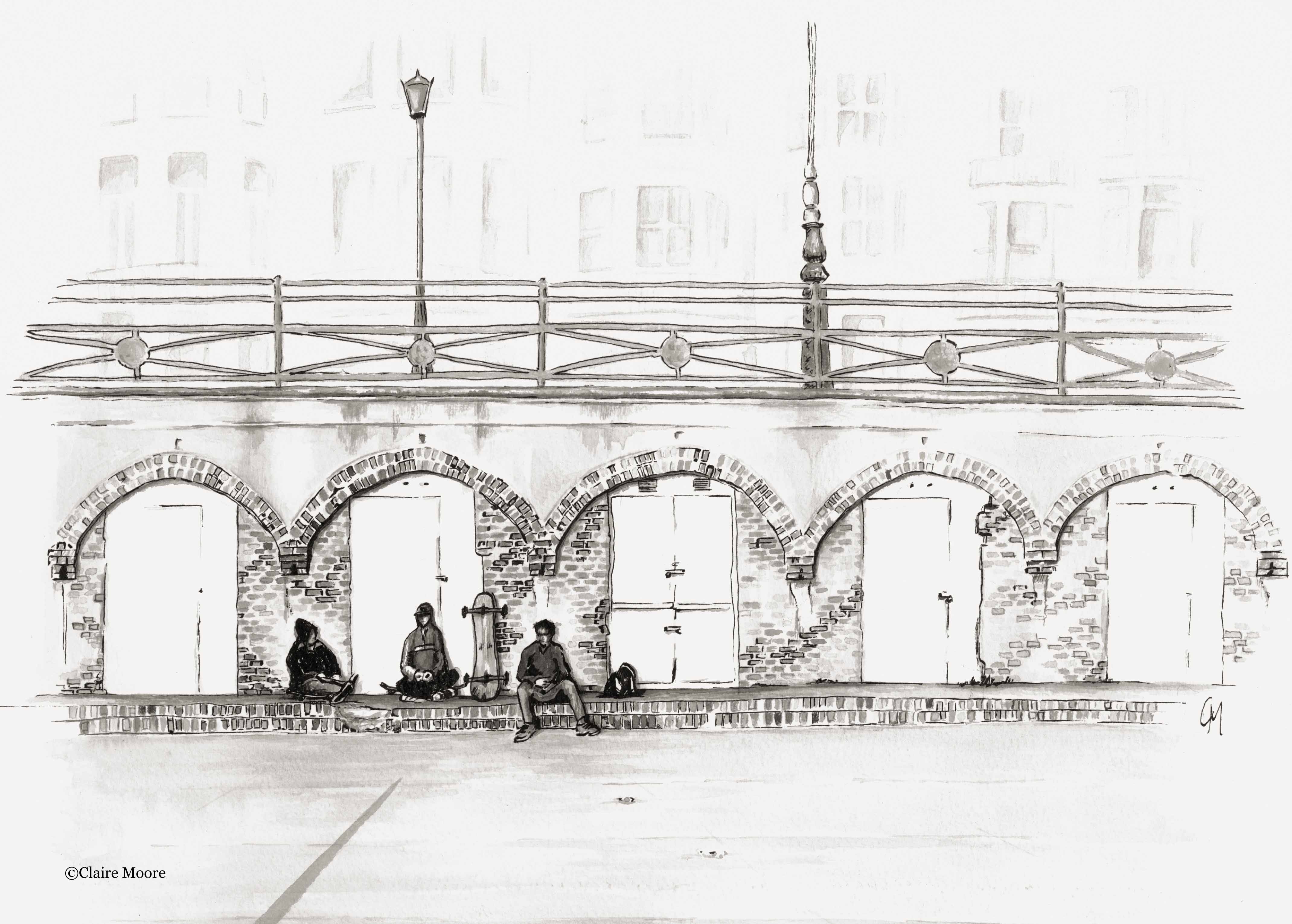 This year I have some work on display at the fantastic Bailey and Alexander gallery in the new Arches on the seafront, opposite the West Pier. Number ‘1’ on the central trail. The arches have been renovated and now contain some great little boutique shops. Here’s what they used to look like, boarded up and unused, pre-demolition, on a misty Winters day.